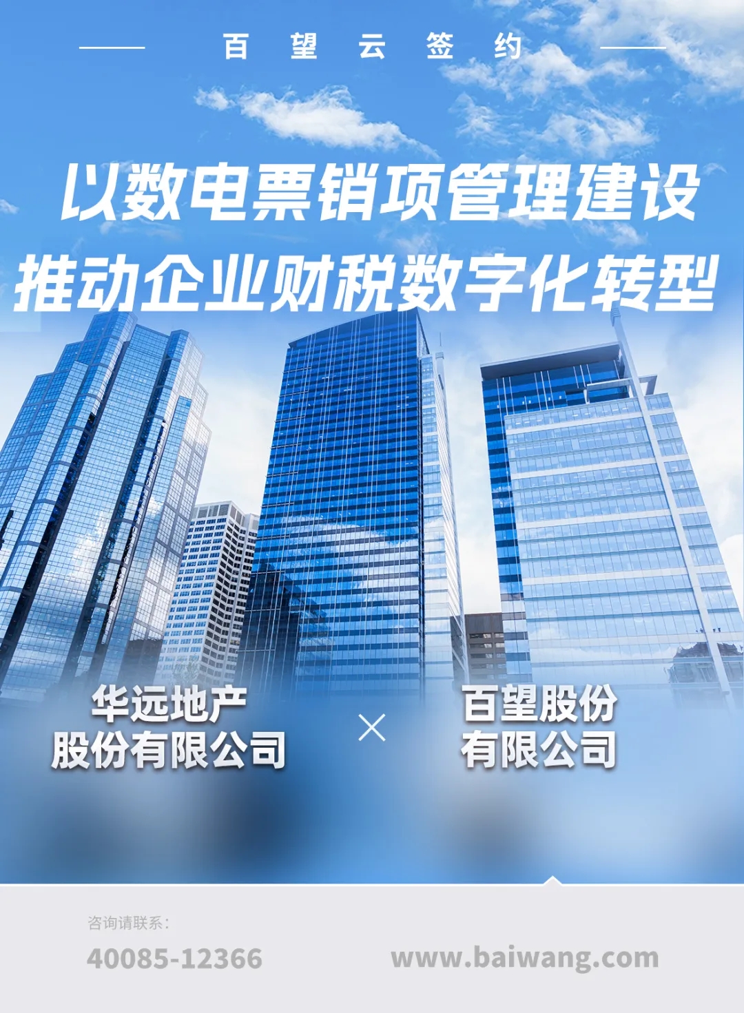 近日,华远地产与百望云达成合作,使用百望云数电票销项凯发国际体育的解决方案,以本地化部署的方式,实现企业数电升级,为财税数字化的进一步升级打好基础。